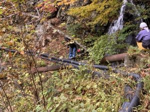 温泉の本管の弛み修正工事